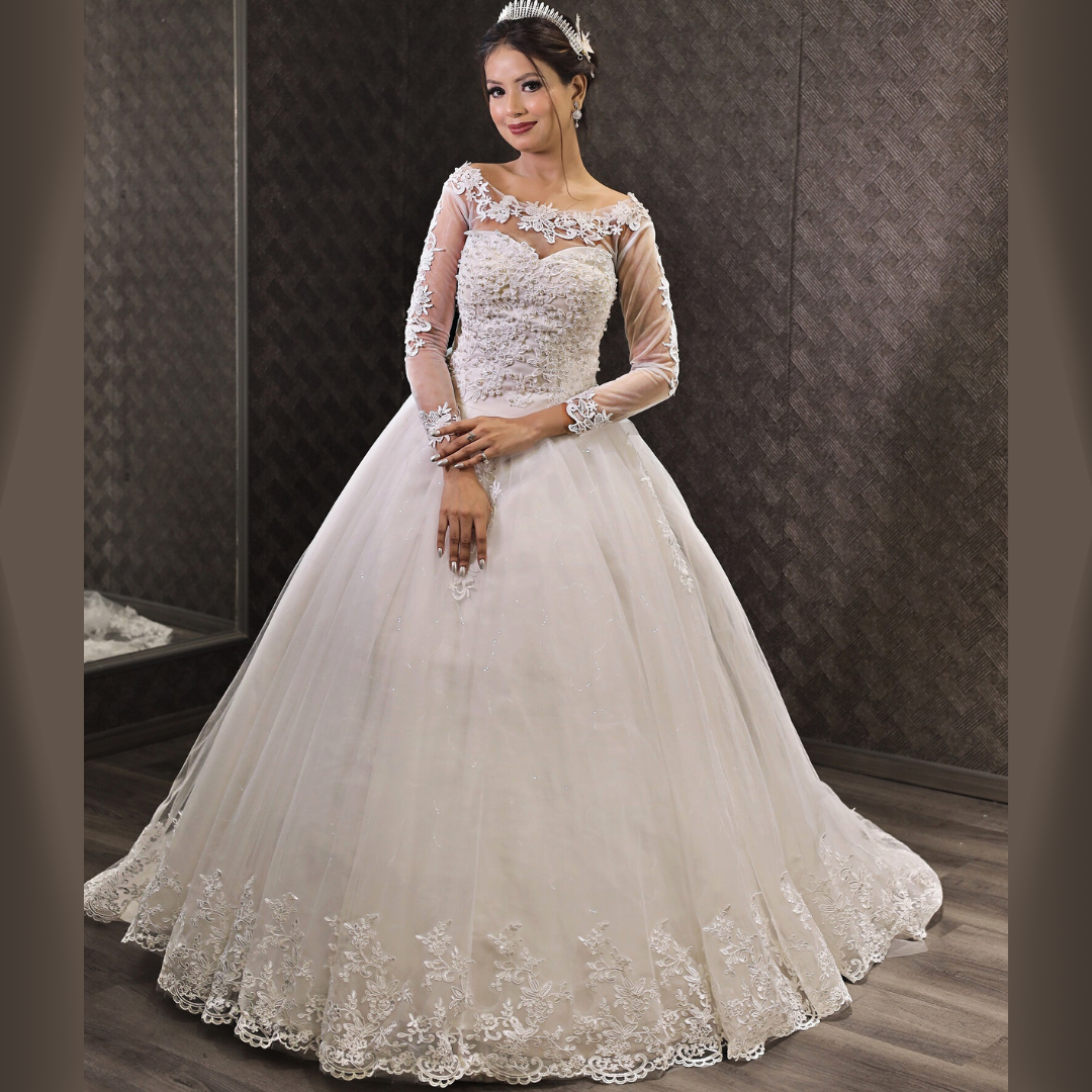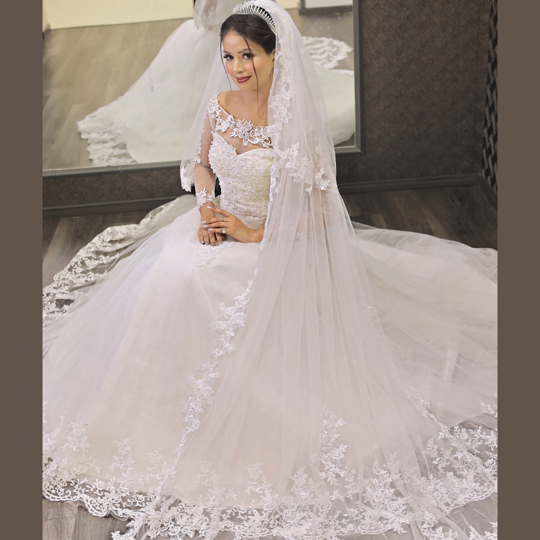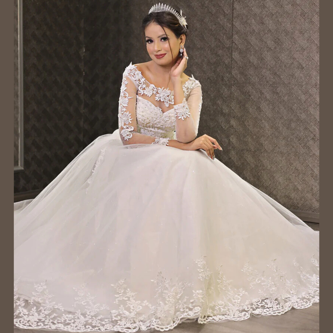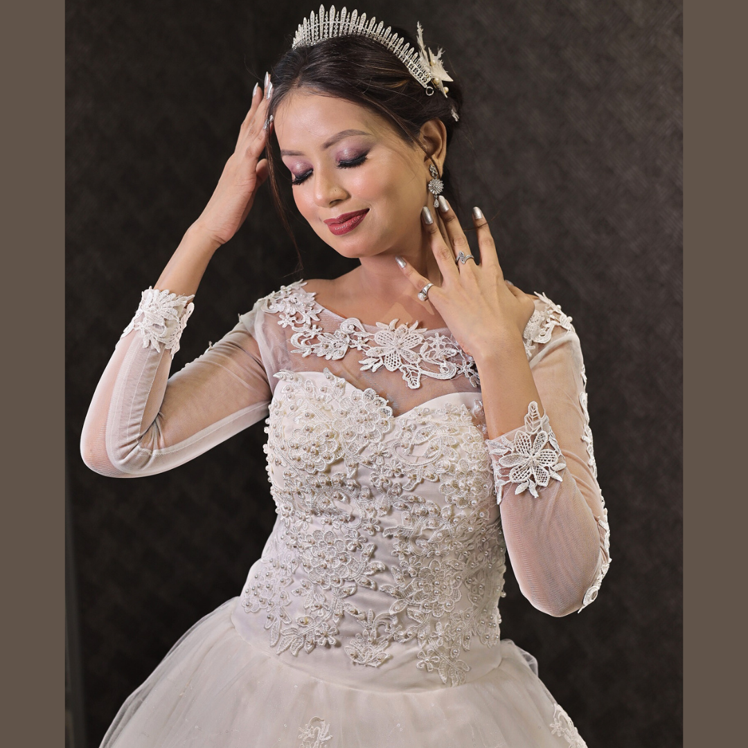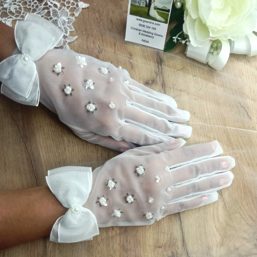 GownLink Full Bridal Set of Five Gown Veil Crown Gloves for Christian & Catholic bride Combo-GF042