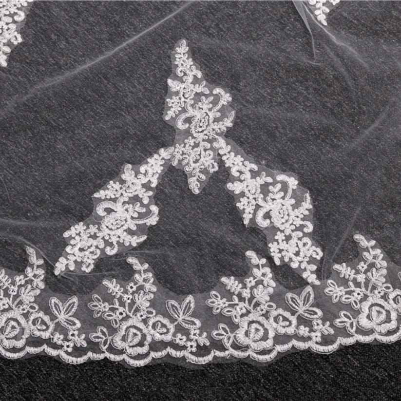 GownLink's Alluring Beauty Bridal Long Veil with Comb Customized with Delicate Patches GLVHL08