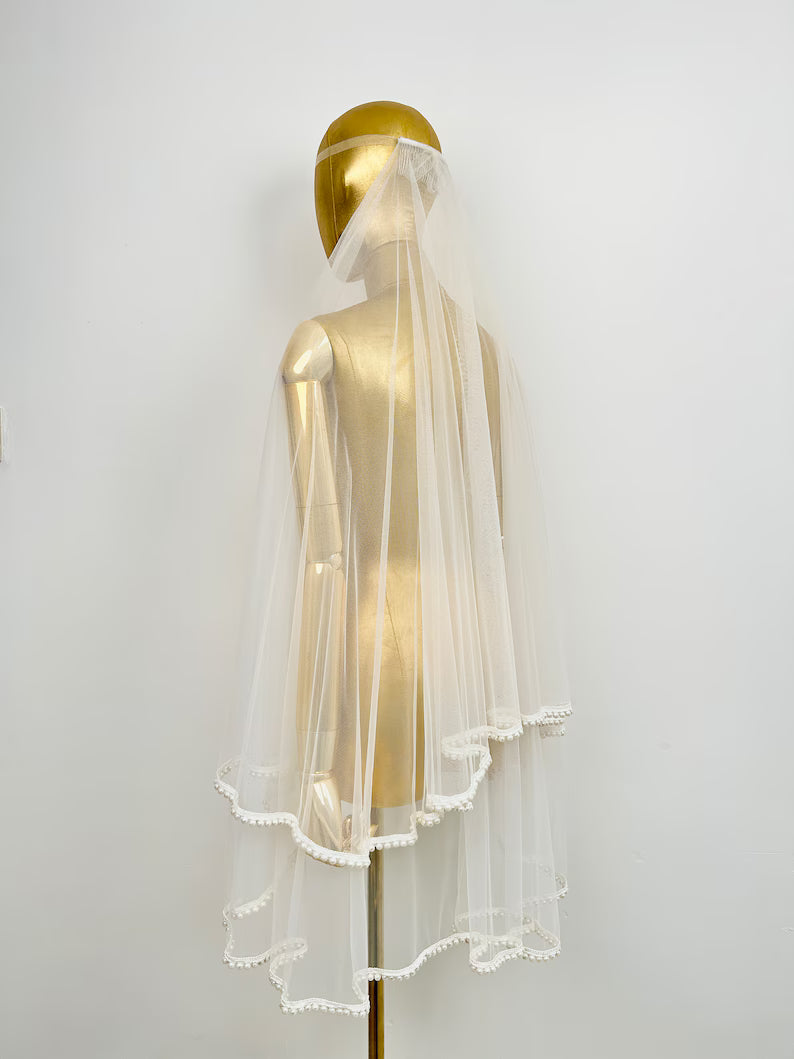 GownLink Bridal Short Veil Comb for Christian & Catholic Weddings GLVL-Pearl