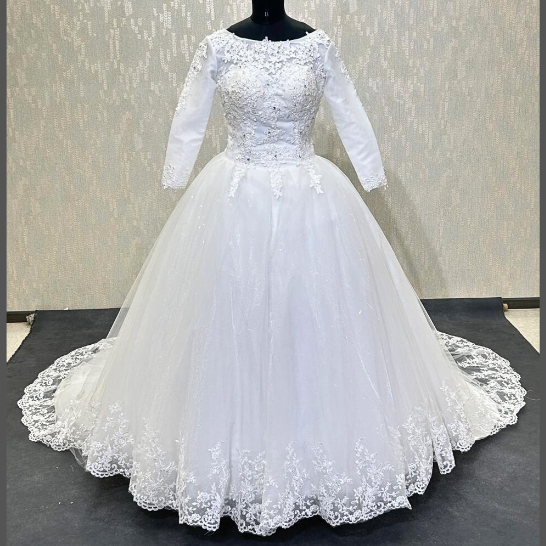 GownLink Christian and Catholic Bridal White Wedding Train Dress With Sleeves Covered GLHSD189TC