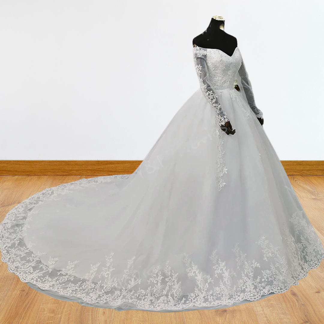 Be the picture of elegance with the Gownlink Bridal Dress, designed with a stunning off-shoulder silhouette and Christian wedding train. Experience heavenly comfort and distinction on your special day!