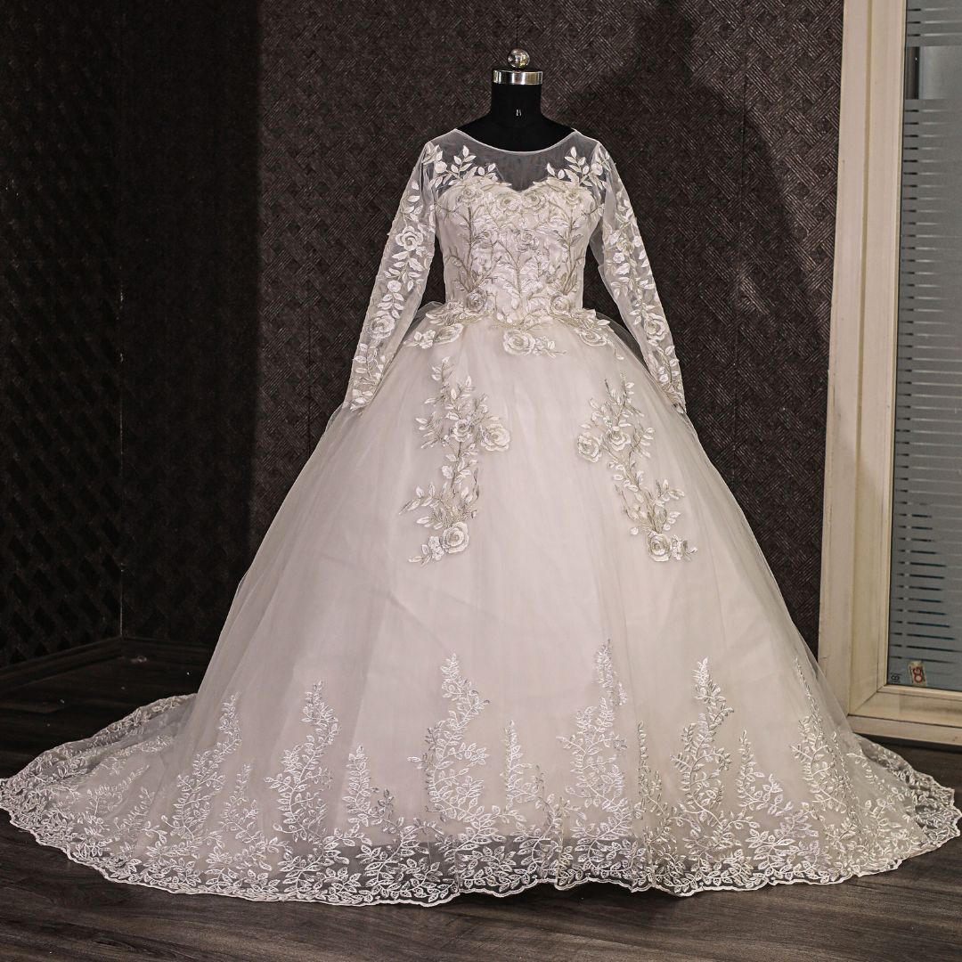 Gownlink White Christian Wedding Train Gown with Lace Appliques GLGF038