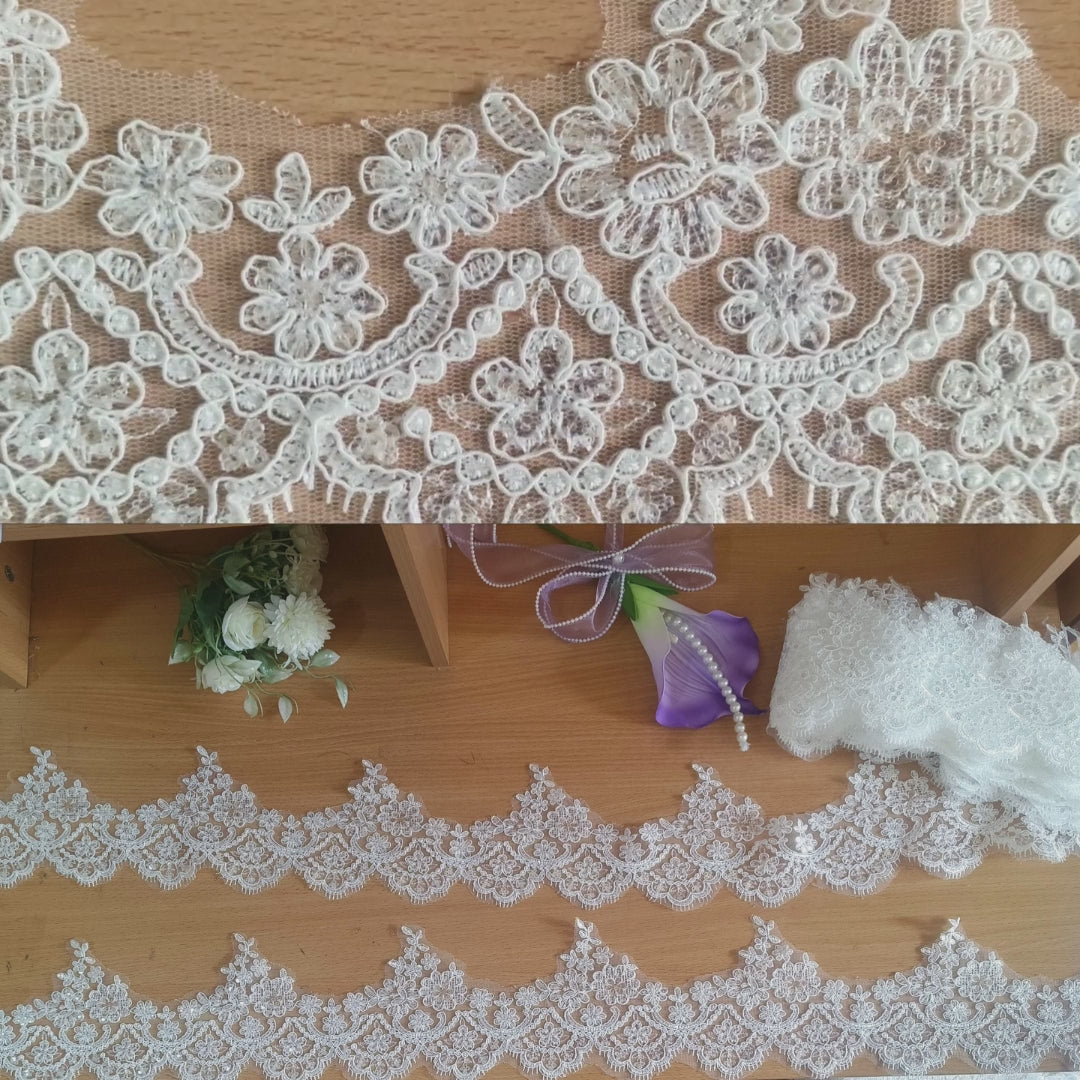 GownLink White Lace Graceful Lace Border Wedding Gown-GLVHL02 Lace