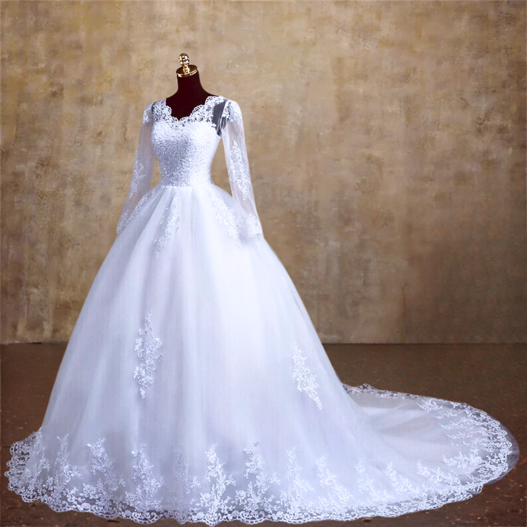 GownLink's Enchanting White Wedding Gown with Lace Bodice and Elegant Train for Christian & Catholic Weddings